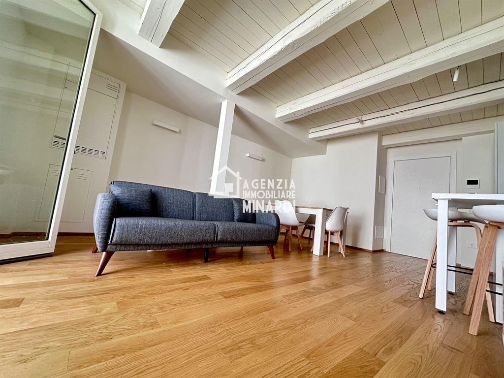 luminoso soggiorno con cucina a nicchia, arredata e completa di elettrodomestici nuovi;