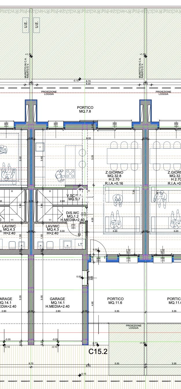 - Zona Giorno: Ampio soggiorno progettato per accogliere sia una comoda area relax che una spaziosa zona pranzo. Le ampie vetrate garantiscono un’ottima illuminazione naturale e una vista sul giardino privato.